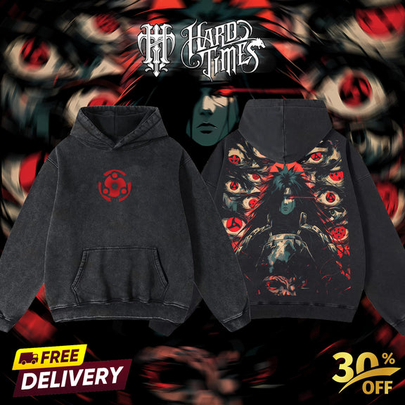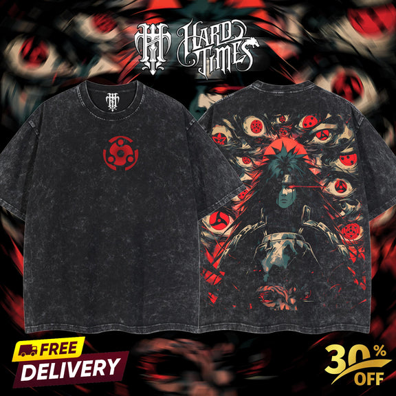 HardTimesClothing - "Uchiha Madara" Naruto Retro Vintage Unisex Oversize Anime Manga Acid Washed Heavyweight Cotton T-shirt, Anime Merch, Gift For Anime Fan.